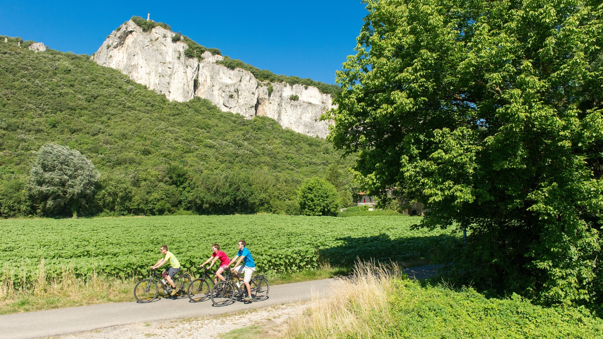 Une étape de contraste le long de la rive droite du Rhône, avec Cruas et Rochemaure, un village dominé par la silhouette des ruines de son château se détachant dans le ciel, 25 km. Puis vous franchirez une passerelle himalayenne de 340 m, exceptionnel ouvrage d’art réalisé pour la Via Rhôna, avant de longer un bras du Rhône sur un parcours nature splendide vous conduisant au pont de Viviers.